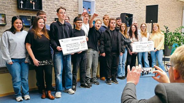 Die beiden siegreichen Teams aus dem Kreis Euskirchen erhielten bei einem Treffen in der Gesamtschule Mechernich ihre Preisgelder.